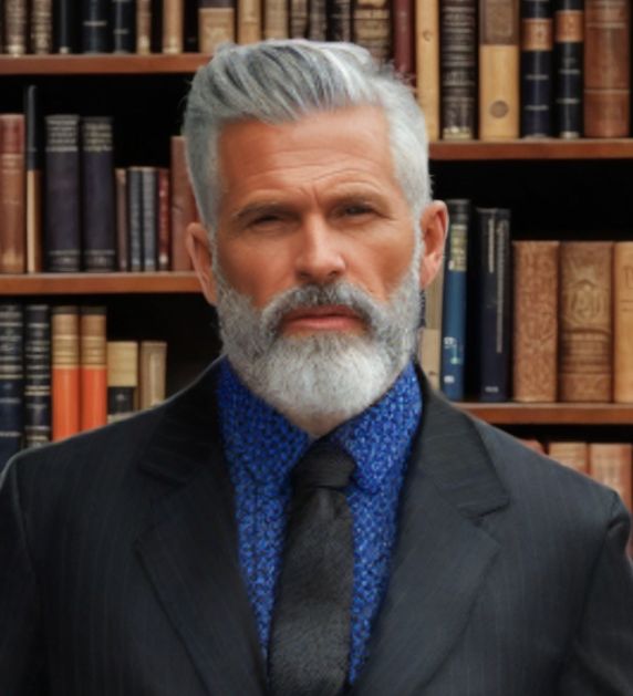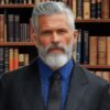 Black pinstriped Jacket, Dark Blue shirt, black tie