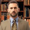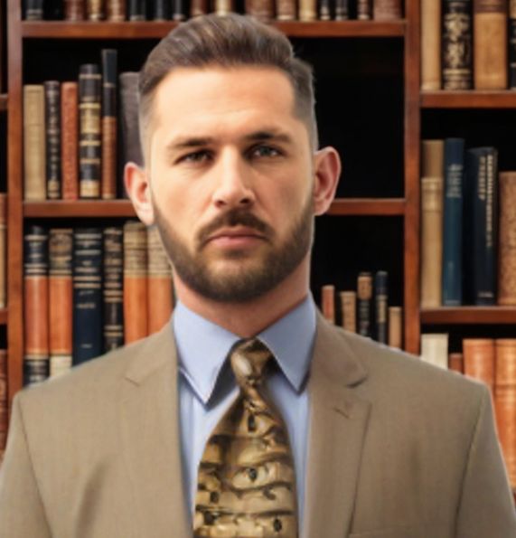 Tan jacket, plaid gray/tan shirt, yellow pattern tie